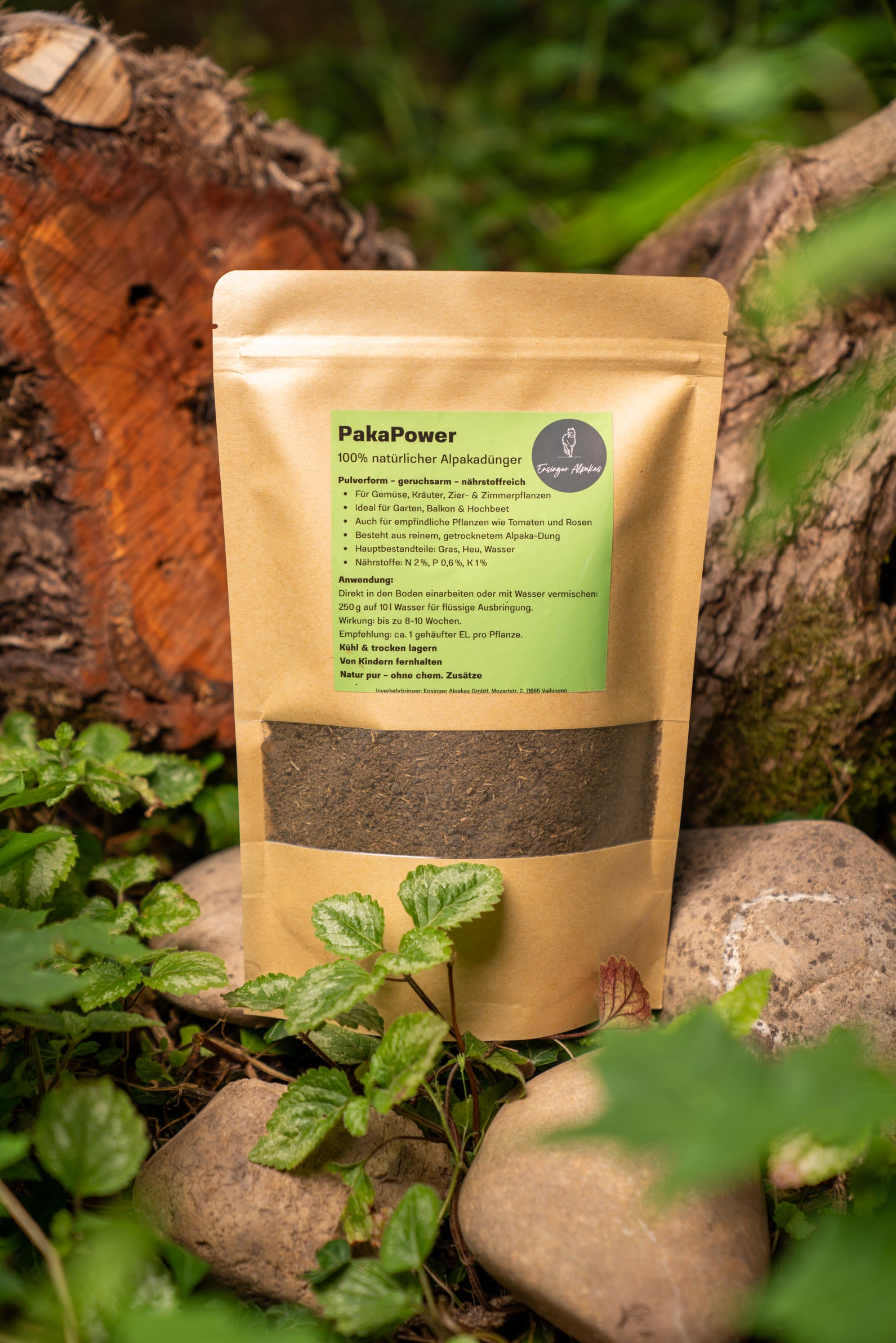 PakaPower ist der kraftvolle, geruchsarme Naturdünger aus 100 % reinem, getrocknetem Alpakamist – ideal für Garten, Balkon und Zimmerpflanzen. Seine milde, nährstoffreiche Zusammensetzung macht ihn besonders geeignet für empfindliche Pflanzen wie Tomaten, Kräuter oder Rosen.